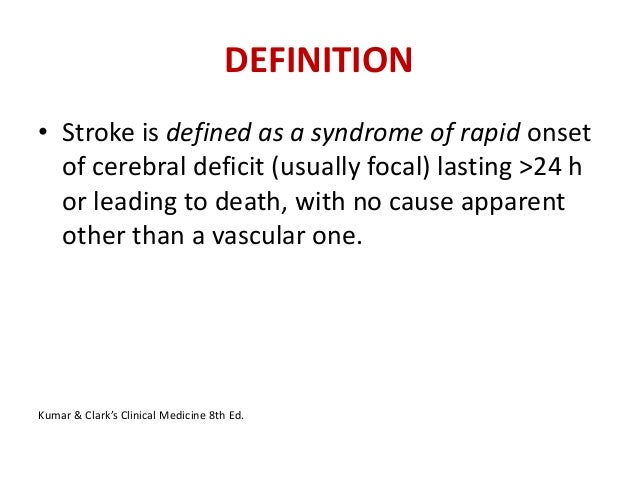It accounts for about 87 of all strokes. Central nervous system infarction occurs over a clinical spectrum.